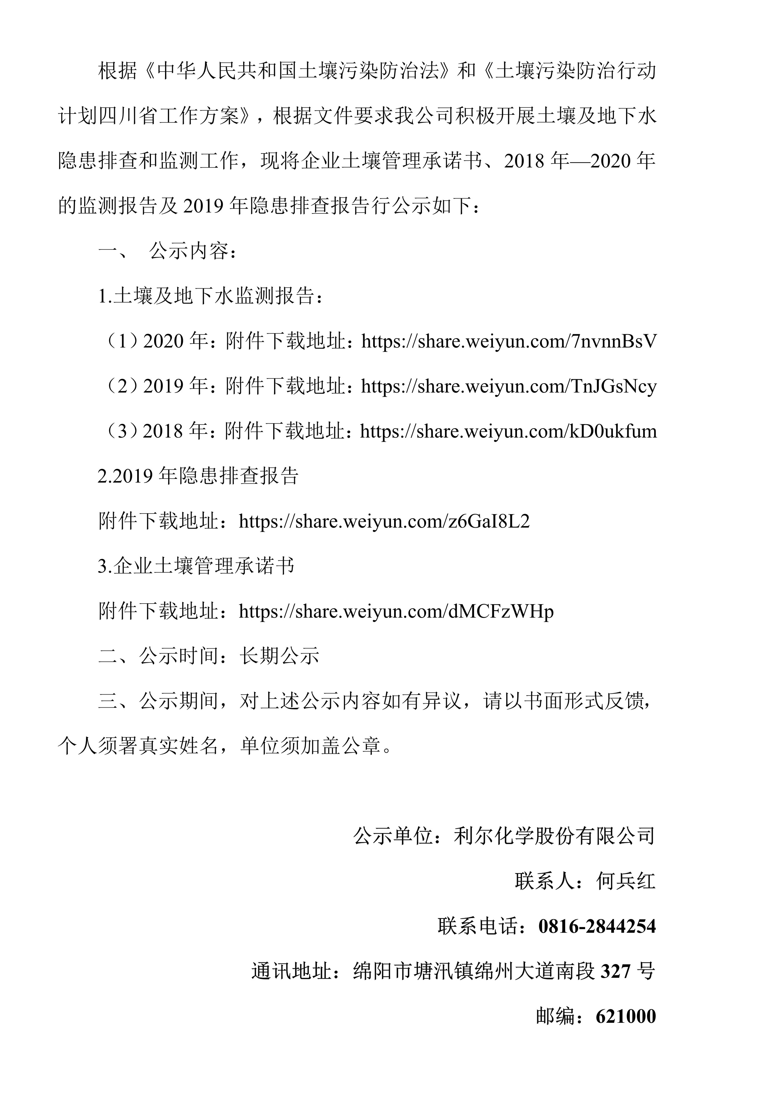 土壤及地下水監(jiān)測報(bào)告、隱患排查、承諾書公示情況說明